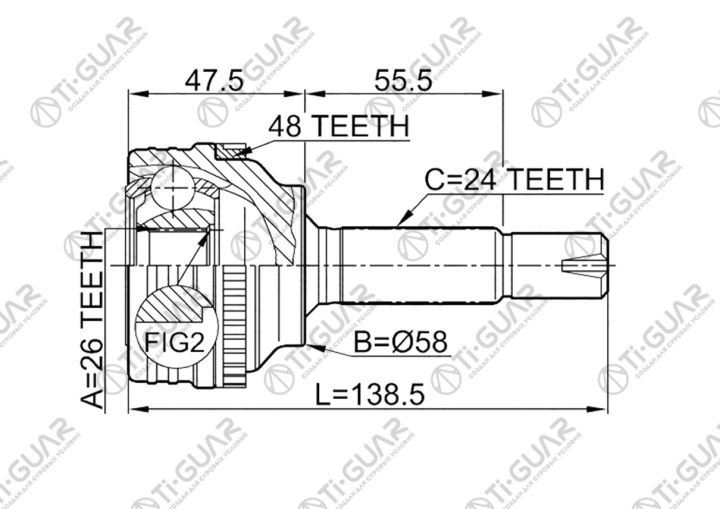 ШРУС наружный / правый /левый /TI-GUAR для Toyota Vitz Platz 1999- 1SZFE; 26*58*24; TG-9540Z48; (TO-040A48 43420-52050 0110040A48) 4341052040 4346059025